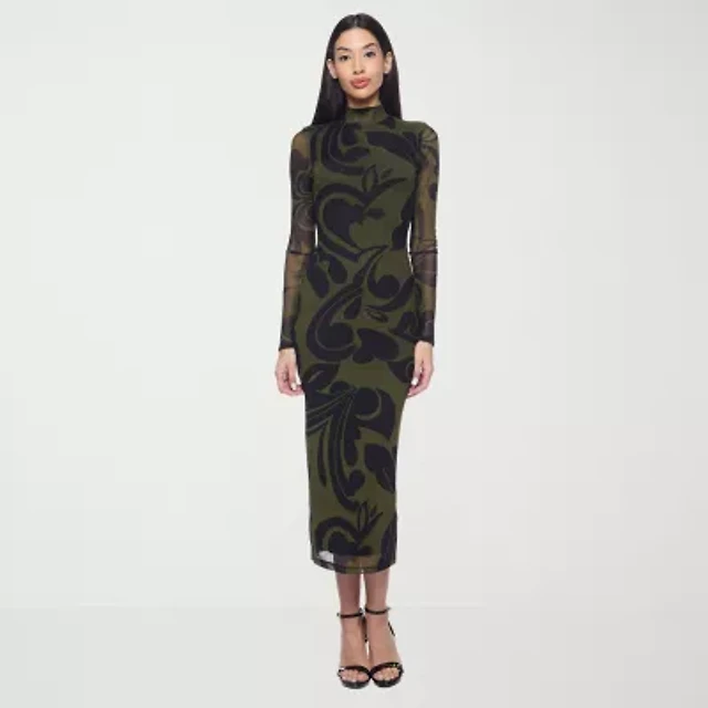 Premier Amour Womens Long Sleeve Midi Sheath Dress