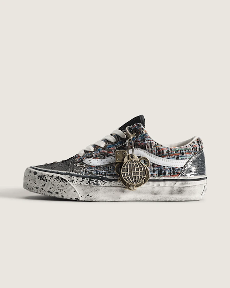 The Premium Old Skool ''Charms'' redefines an iconic silhouette with embellishments, elevated comfort, and refined details that honor its heritage. Designed with care and crafted for all-day wear, it delivers style rooted in legacy while embracing modern innovation for a look and feel like no other. With a colorful tweed upper, a splatter design, and a bold metal charm, this is a Premium Old Skool designed to stand out.