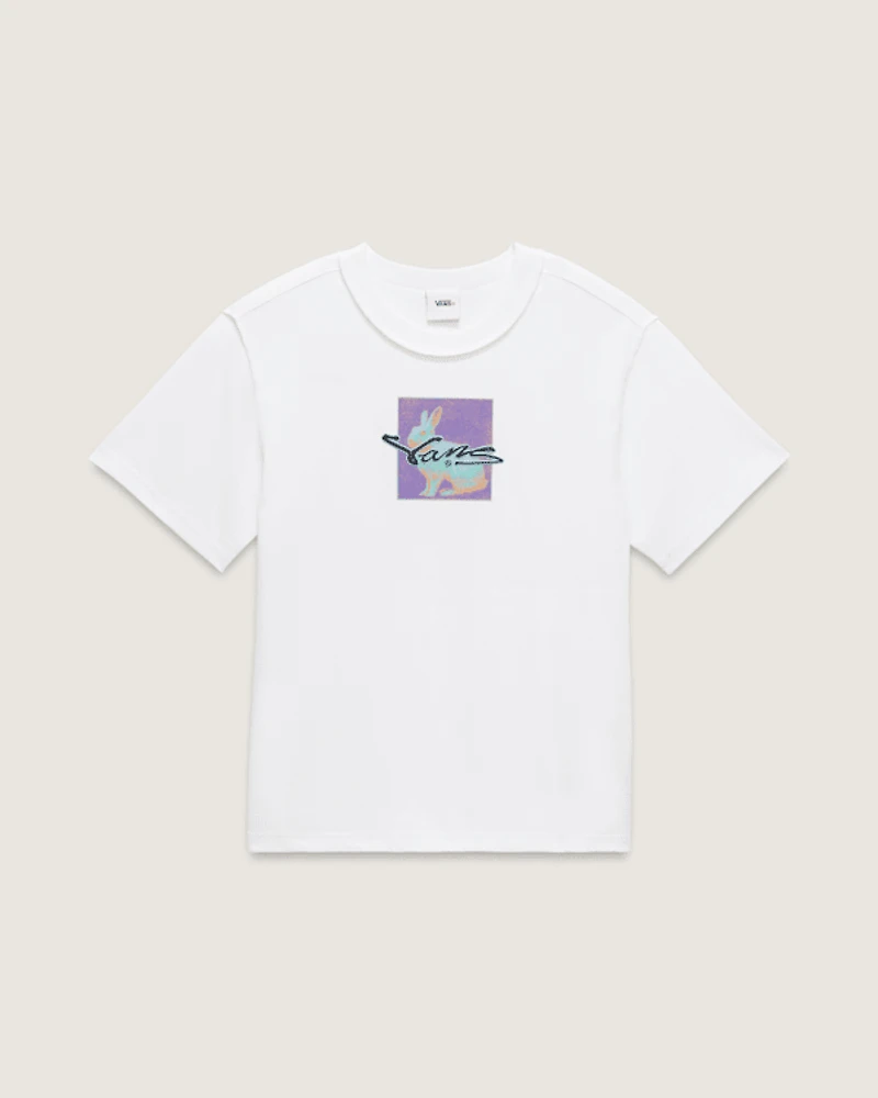 The Premium T-Shirt redefines a classic with unique textures and crafted details. Featuring a puff-print bunny graphic and embroidered back art, this tee blends creativity and comfort in true Vans fashion. Designed with exposed seam accents and a relaxed fit, it’s built for everyday wear that stands out.