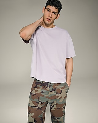This modern tee is cut in a boxy style with a looser fit. It features premium weight fabric, classic short sleeves and a crew neck.