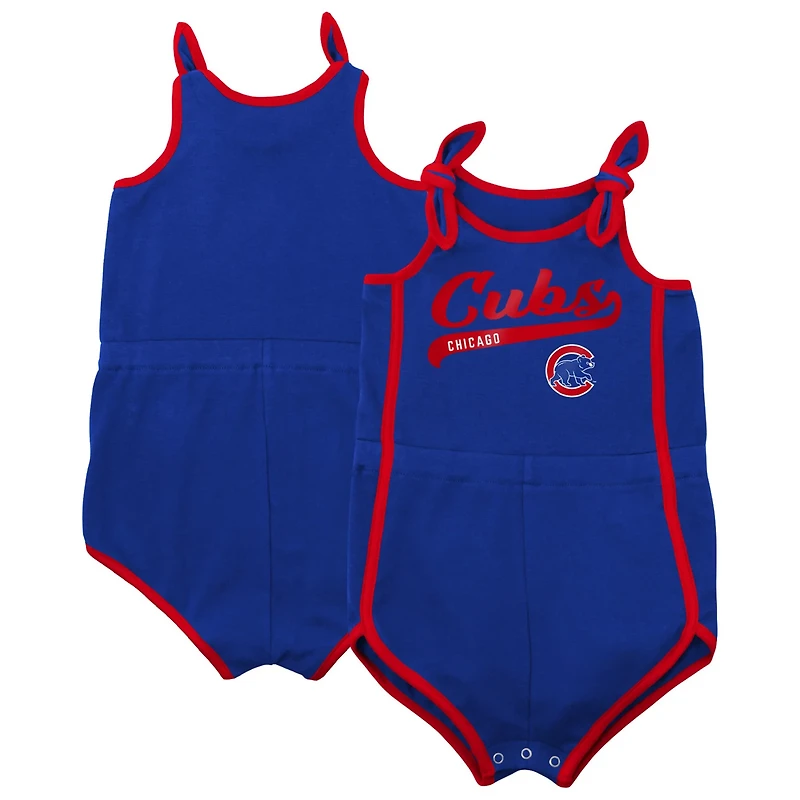 Designed for your favorite little Chicago Cubs fan this bodysuit will have them game-ready in a snap The team colored fabric is accented with contrast team-colored piping details as well as a Chicago Cubs logo on the chest The soft fabric and sleeveless design will keep them comfortable all game day long