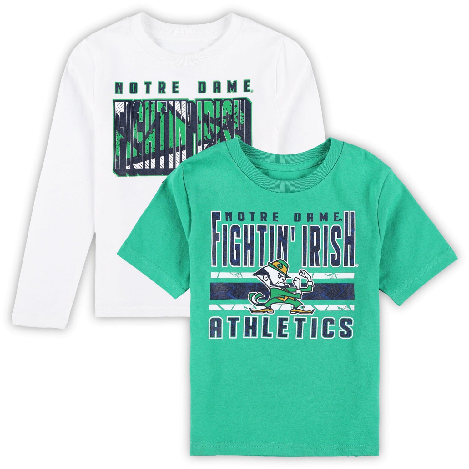 Give your little one a taste of the Notre Dame Fighting Irish spirit with this In the Mix T-Shirt Combo Set This vibrant set includes both a short sleeve and long sleeve tee each featuring bold Notre Dame Fighting Irish graphics that showcase their growing team spirit Made from 100 cotton this set provides lasting comfort for all their pre-school adventures whether they're cheering on the Fighting Irish or enjoying playtime with friends