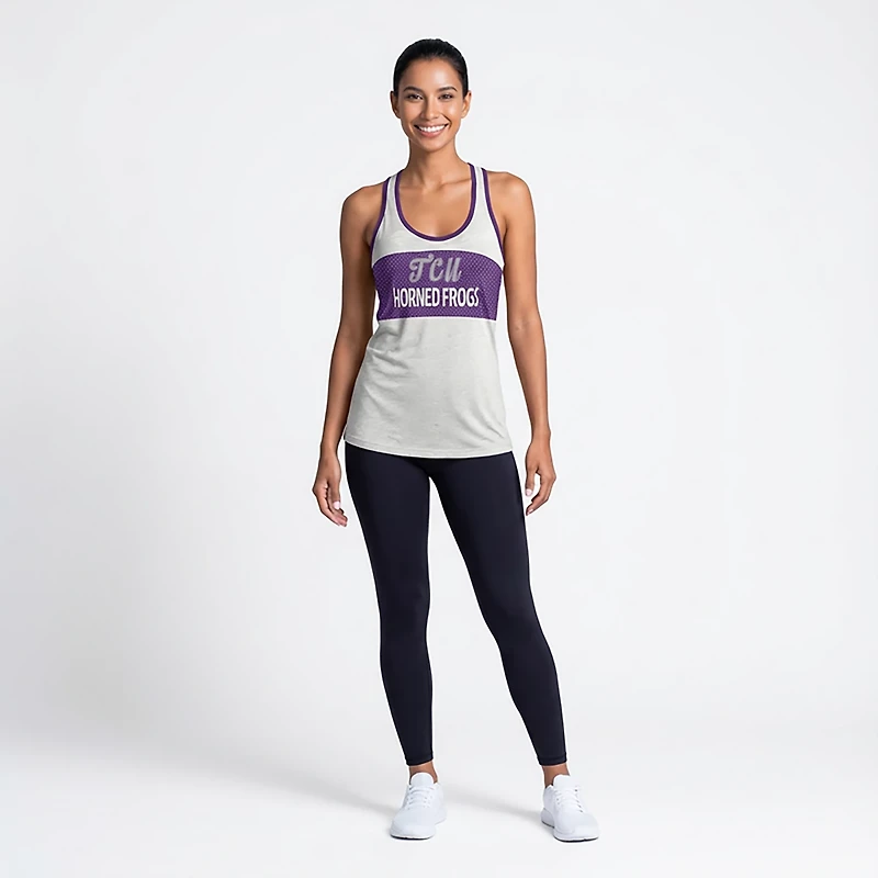 Whether you're tailgating or watching at home, enjoy the game in the Pressbox Women's TCU Tracy Slub Tank Top. This tank top offers a sleeveless design for a casual style and a team theme that helps highlight your fandom.