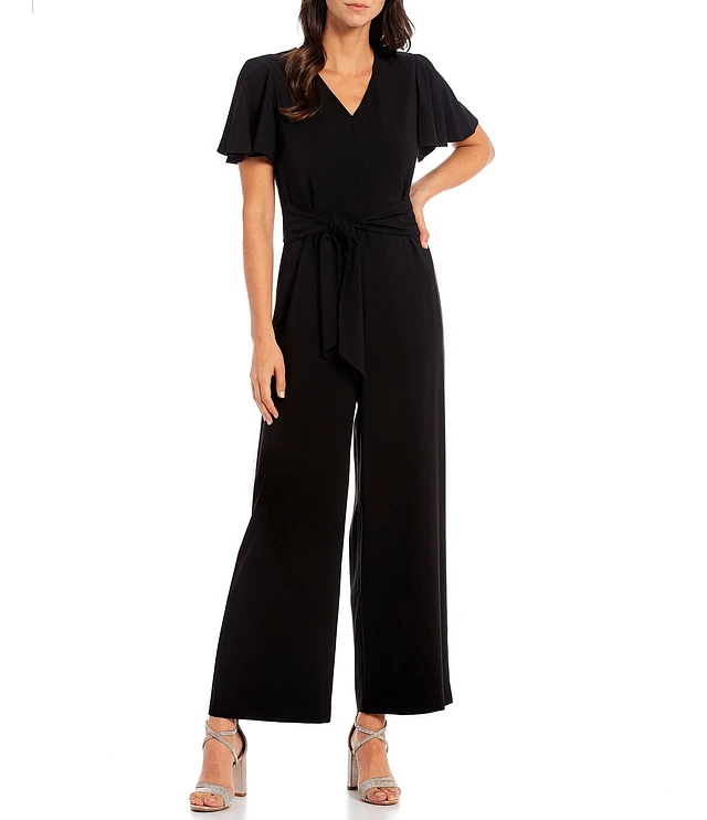 Preston & York Kayla V-Neck Short Flutter Sleeve Tie Belt Jumpsuit