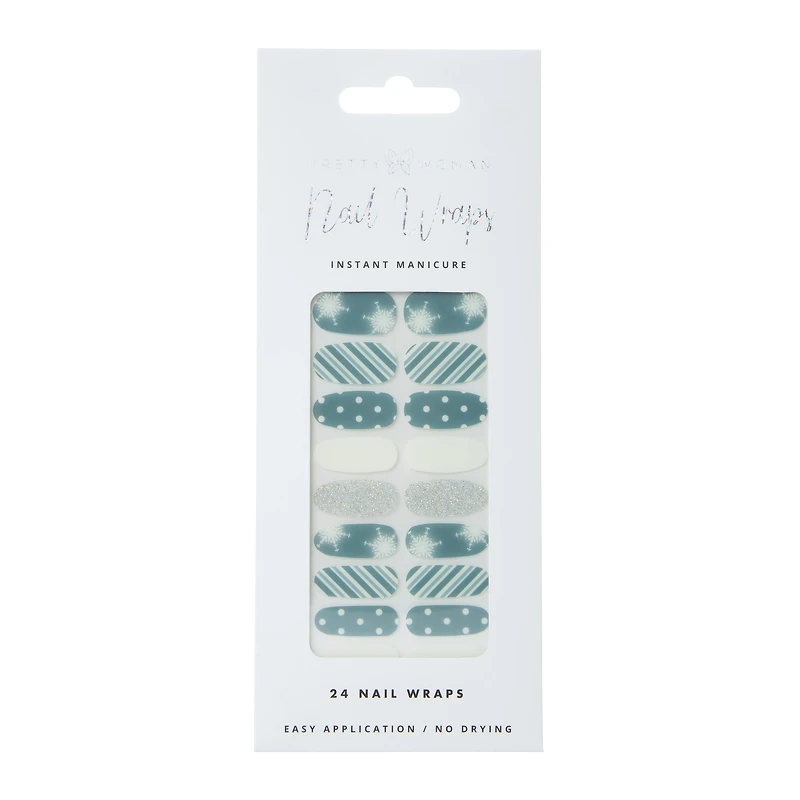 Pretty Woman Holiday Nail Wraps 24-Piece - Blue & White