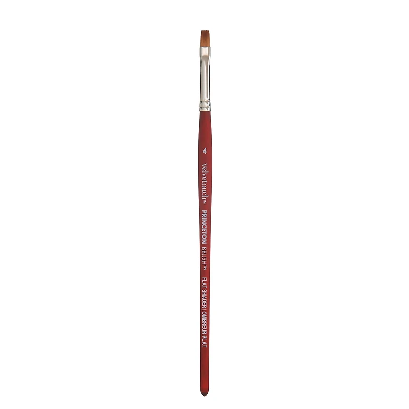 Velvetouch is the ultimate mixed media brush, great to use with oil, watercolor and acrylics. The signature Velvetouch handle allows for a smooth comfortable grip.Details:Series 3950Flat shaderAvailable in multiple sizesLuxury synthetic blend filamentSeamless ferruleAttractive red handleSuper soft gripFor use with oil, watercolor and acrylic paints