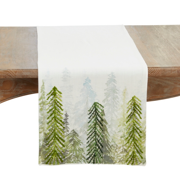 Create a stunning, nature-inspired tablescape with this Printed and Beaded Trees Table Runner. The outdoor scene is perfect for winter but also versatile enough for all year round. Runner measures 72L x 16W in. Crafted of cotton Features printed and beaded tree designs Hues of green and white Non-reversible design; unlined The final size of the product may differ by a few inches as a result of the finishing process. Color of product may exhibit slight variations due to the nature of the dyeing process, difference in lighting conditions, and individual monitor settings. Care: Spot clean. This item is available at Kirklands.com only, not available in stores. Please note: this item cannot be shipped to APO/FPO addresses.