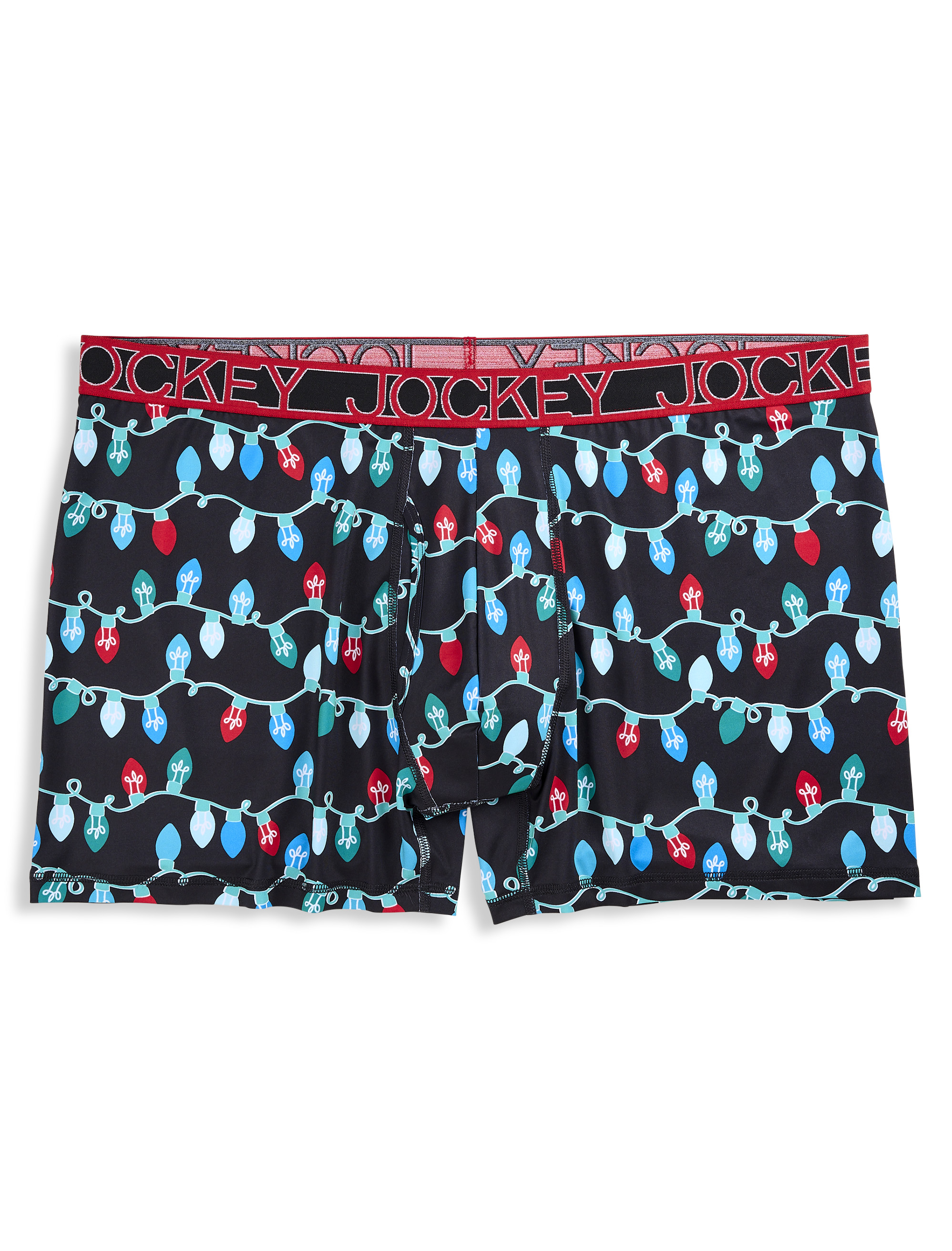 Keep it fun and festive. These Jockey® boxer briefs are the ultimate solution to sweat, chafing and those annoying, awkward adjustments caused from shifting. The moisture-wicking style is crafted from a recycled polyester and spandex blend to help keep you cool and dry and for a smaller ecological footprint. The supportive pouch is designed for comfort and improved airflow to minimize friction and chafing.