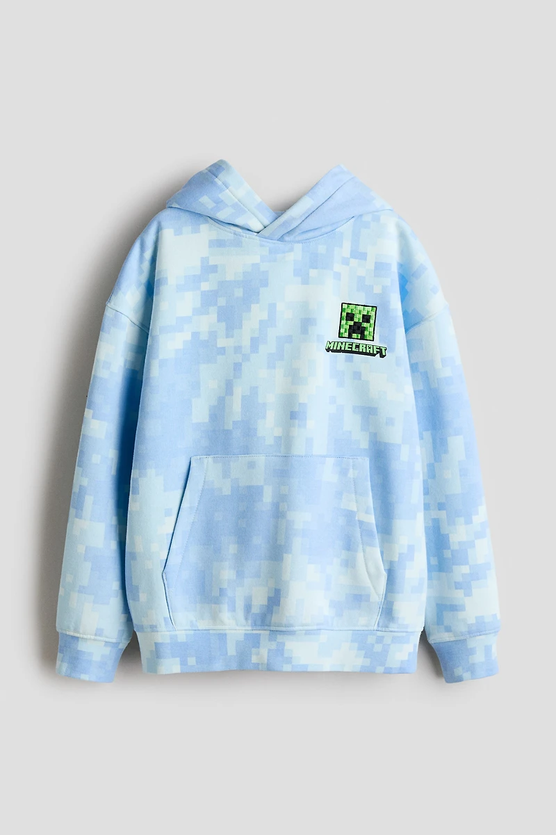 Loose-fit sweatshirt hoodie with a printed design and soft, brushed inside. Lined, wrap-front hood, heavily dropped shoulders, and a kangaroo pocket. Long sleeves and ribbing at cuffs and hem.