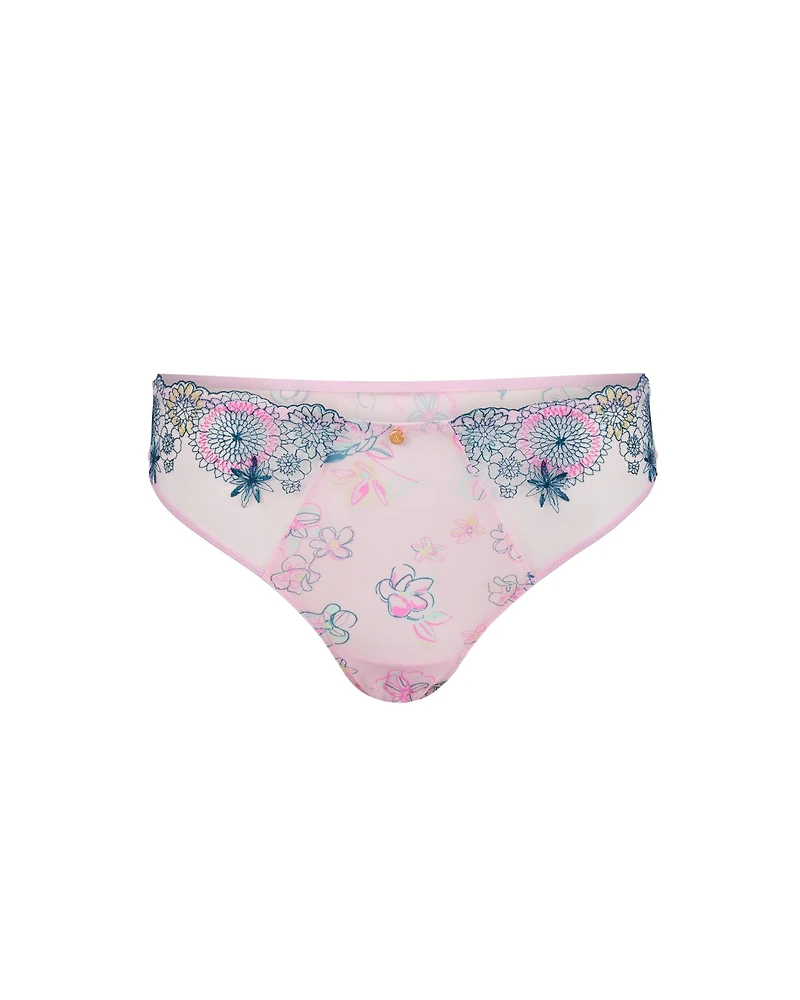 The Prisma Brazilian Floral Pink Brazilian with embroidery is a romantic-fashion standout. Designed with a - pull-on design, Mesh inset, regular rise, Sheer, and lightweight fabric, it’s both alluring and comfortable. (Available in sizes XS-XL.)
