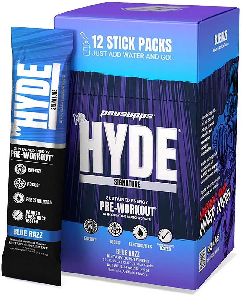 Unleash your ultimate workout potential with PRO SUPPS MR. HYDE SIGNATURE STICKS - 12pack! These convenient, on-the-go stick packs are your secret weapon for powering through intense training sessions, providing a potent blend of ingredients designed to maximize energy, focus, and performance. Whether you're hitting the gym, tackling an outdoor challenge, or just need a serious pick-me-up, HYDE Signature Sticks deliver a sustained boost to help you crush your goals.