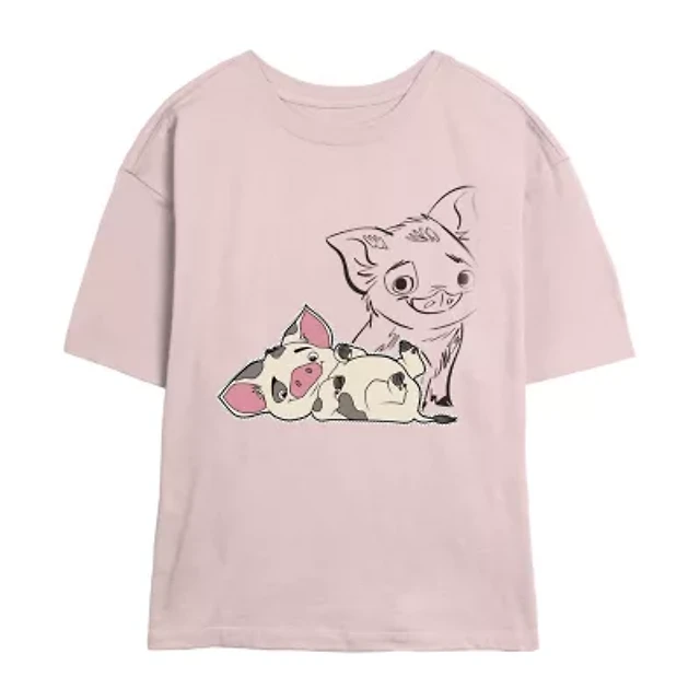 Pua Womens Juniors Crew Neck Short Sleeve Regular Fit Moana Graphic T-Shirt