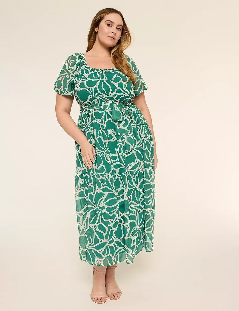 Available in Plus Size This midi dress in a bright floral print will get you noticed at any occasion. FIT: Fit & Flare. Universally flattering silhouette with a classic fit bodice, fitted waist and flared skirt. Front Length (On Body): 54" (hits mid to lower calf) Maxi length FEATURES: Square-neck Short puff sleeves Elastic waist FABRIC: Soft fabric Machine Wash Cold With Like Colors Gentle Cycle Only Non-Chlorine Bleach When Needed Tumble Dry Low Cool Iron If Needed SHELL:100% Polyester LINING:100% Polyester Item Number #415146 Imported Plus Size Dress ". Plus Size Puff Sleeve Tiered Midi Dress, in Delia Floral, 18/20, Women's, Lane Bryant
