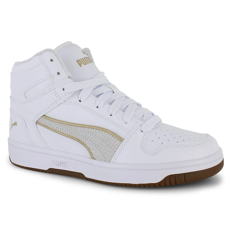 Up your game in the new PUMA Rebound LayUp. Inspired by classic court styles, the Rebound LayUp is a new interpretation of the mid-cut basketball trainer. The full synthetic leather upper combined with a mid-cut padded collar and tongue ensures a comfortable and supportive fit. Perforations on the vamp and classic PUMA Formstrip branding create an iconic basketball look while the SoftFoam+ sockliner provides superior cushioning and optimal comfort with every step.