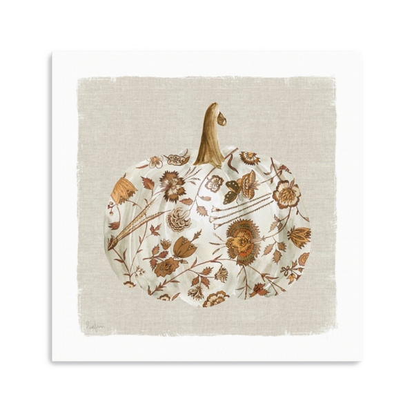 Add a touch of warmth and harvest charm to your home with the Pumpkin Floral I Canvas Art Print. This fall art is both festive yet understated, making it perfect for the transition from summer to fall. Overall dimensions Width: 20 in. Depth: 1.25 in. Height: 20 in. Distinctively printed on stretched canvas Wrapped edges complete the look Features a pumpkin with floral pattern subject Hues of beige, brown, orange, and white Artist: Livi Finn Weight: 1.8 lbs. Hangs from back-mounted hardware Care: Dust with a soft, dry cloth. This item is available at Kirklands.com only, not available in stores. Please note: this item cannot be shipped to APO/FPO addresses.
