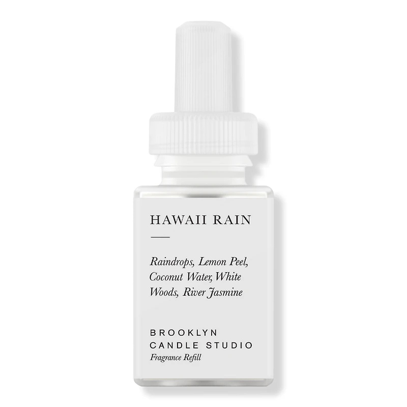 PURA X BROOKLYN CNDL REFILLS HAWAII RAIN. Features: Long lasting - Typical Pura 4 users experience up to 45 days of premium scent when diffusing 2 fragrance vials for 68 hours per day. Automatic vial detection - Simply insert your smart fragrance vial and Pura 4 automatically detects the fragrance, creating a seamless swapping experience.. Smart features - Adjust fragrance intensity, set schedules and timers, and more in the Pura app. Pura fragrances are thoughtfully designed to never include harsh chemicals.. Refill for the Pura 4, Pura Plus, and Pura Mini Smart Fragrance Diffusers. Fragrance Family: Escape to the mountains of Hawaii with cool raindrops, lemon peel, fresh coconut water, and a hint of river jasmine.. Imagine waiting out the rain underneath the tree canopies in the dense Hawaiian mountains, surrounded by the most beautiful blooms and fragrant plant life.. With notes of coconut water and bitter orange, river jasmine and raindrops, that is precisely what Hawaii Rain evokes.. Key Notes: Top: raindrops, lemon peel. Middle: bitter orange, coconut water. Bottom: white woods, river jasmine.