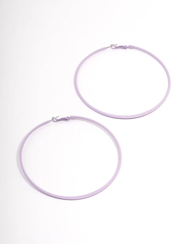 Purple Coated Felt Edge Hoop Earrings 9cm