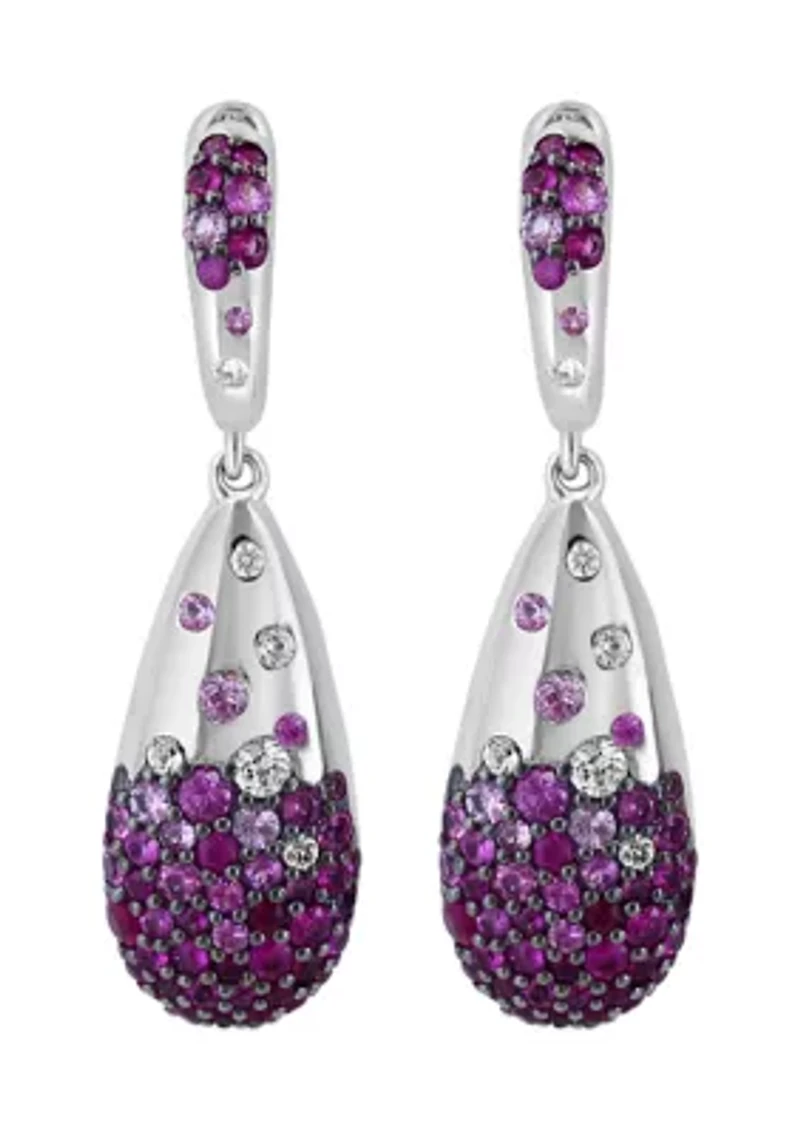 These elegant earrings from Effy® enhance any outfit with their delicate design, offering subtle sophistication that's perfect for all occasions. 26 Rubies 14 White Sapphires Hinge post earring Polished finish Prong setting Warranty available, limited liability warranty, lifetime Imported Product Specifications 1.47" L x 0.41" W 2.60 ct. t.w. Mixed Ruby and White Sapphire Material & Care Sterling silver Clean with a soft cloth