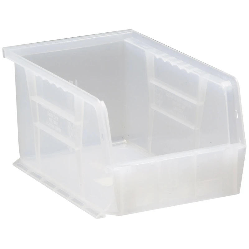 Made in the USA from heavy duty, virgin grade, high density FDA approved polypropylene, this bin can stack, hang and are great for customizing a storage solution for your needs. Including front, back and side grips for easy handling and built in rear hangers that allow bins to hang from louvered panels or rails. Wide stacking ledges and anti-slide locks keep stacked bins steady and prevent forward shifting.