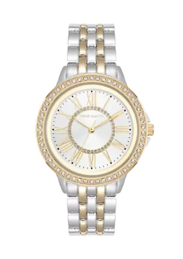 Quartz Gold-Tone Metal Alloy Crystal Accented Dial Watch