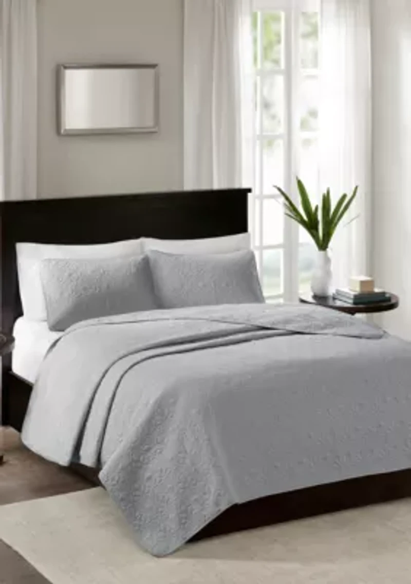 The Madison Park Quebec Reversible Quilt Set offers a cottage-inspired update to your bedroom. The quilt and shams (1 in Twin/TwinXL) flaunt a classic stitch pattern that creates a rich depth and texture on the face of the bedding set. Features: • Casual bedding set that is perfect for summer use or layer it on for warmth • 3 piece reversible quilt set with patterned quilting • Pre-washed cotton filling for comfort and stability • Anti-microbial treatment for health and wellness - provides odor control, prevents bacteria buildup, enhances hygiene, and extends product life by keeping linen fresh • Machine washable Full/Queen Size Description: 1 Quilt:90"W x 90"L 2 Standard Shams:20"W x 26"L (2) King/Cal King Size Description: 1 Quilt:104"W x 94"L 2 King Shams:20"W x 36"L (2) Medallion China Imported Material & Care Cotton Polyester Machine washable