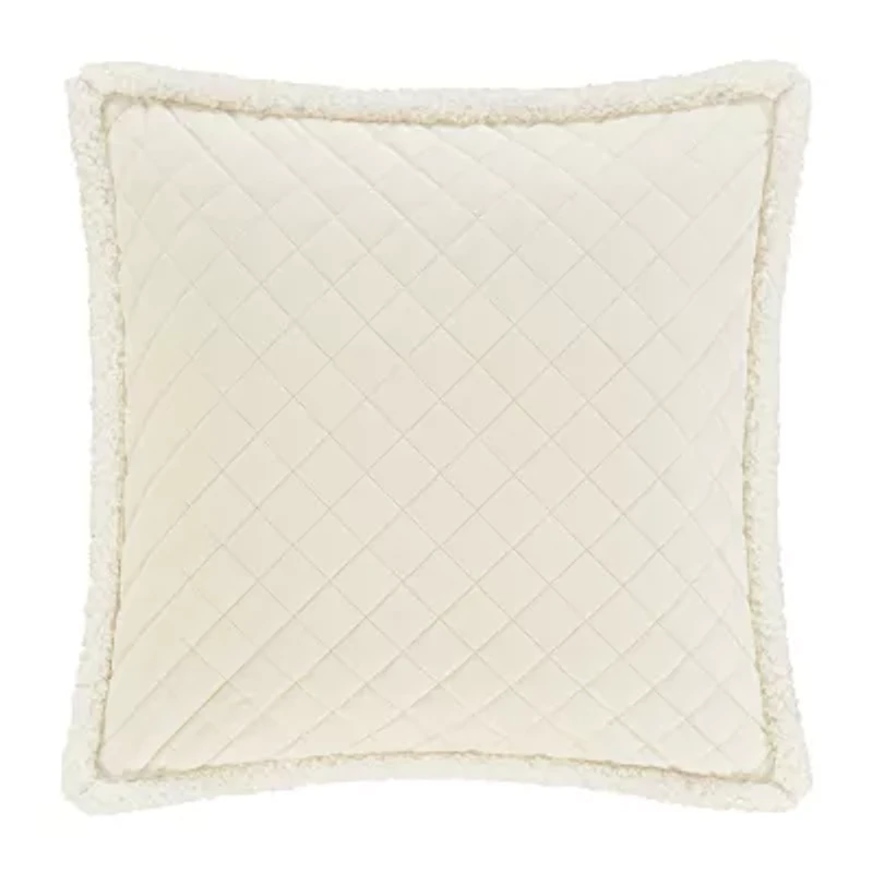 The cozy euro sham is the perfect cozy companion to cuddle up with during the holiday season. The euro is made of luxuriously soft velvet that is trimmed and framed with the cozy white sherpa. The face of the pillow sham is quilted with a diamond design and the reverse is solid velvet with a hidden zipper closure making it simple to clean and store for years to come. You'll leave this on your bed or cuddle up near the fireplace to stay cozy and warm long after the holidays. Available in Christmas crimson, evergreen, or winter white color options.
