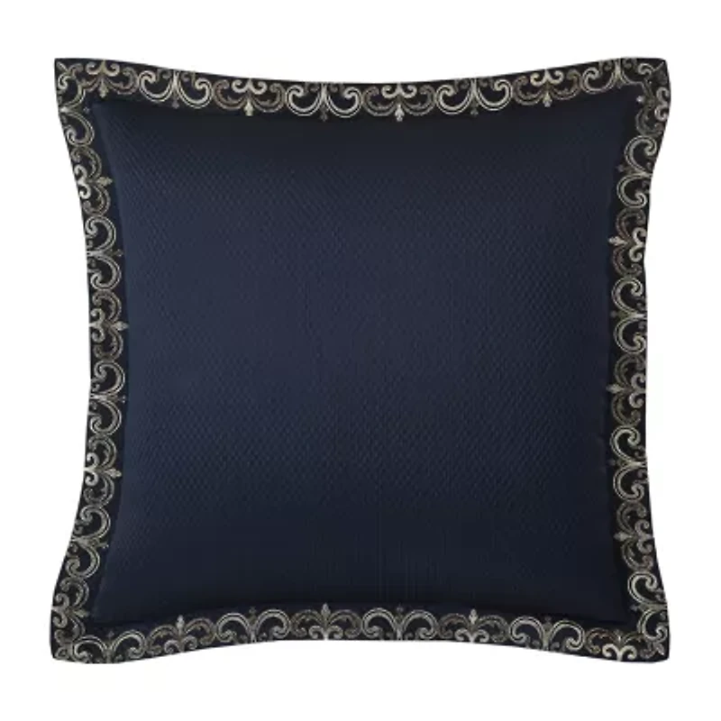 The Cranford Euro Sham beautifully accents you bedding decor with a stunning reversible option. The rich textured royal blue on front and back is uniquely framed with a 2" flange that accents a coordinating scroll motif. A perfect finishing backdrop to the Cranford bedding set.
