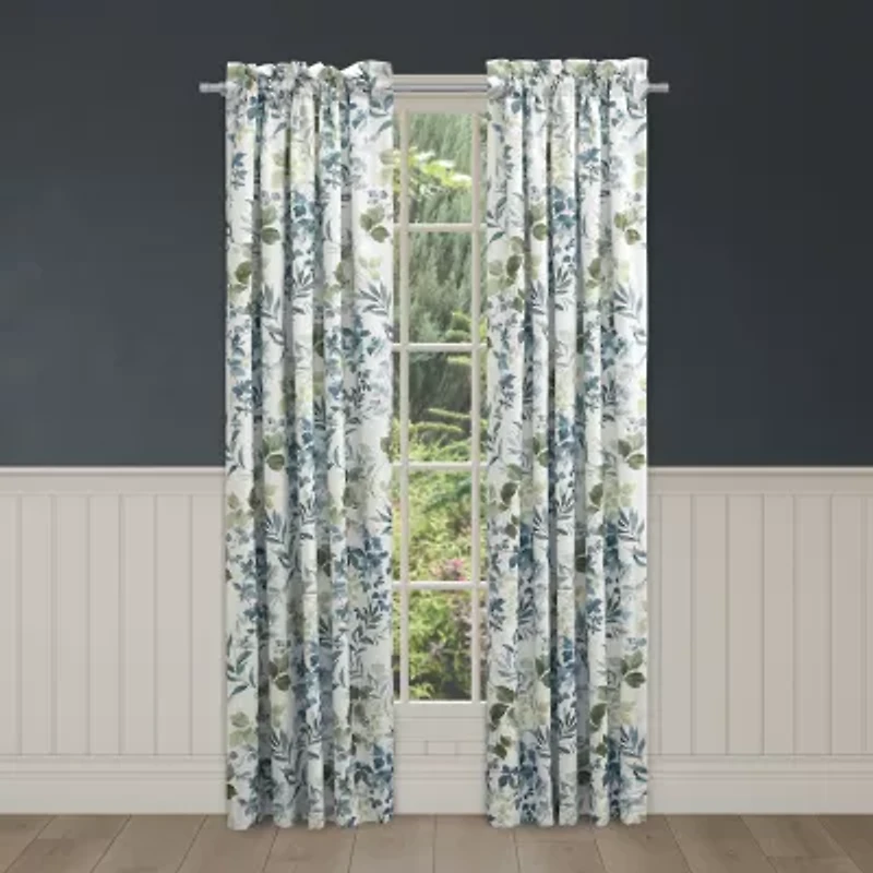 The elwood window panel pair is printed on a lightly brushed microfiber with a beautiful botanical leaf design in shades of blue and green that match the bedding design. With its lush garden design, these panels drape beautifully around your windowsill, and are an excellent addition to your home decor. Add the coordinating window valance and bedding collections to complete the look.