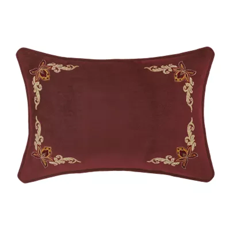The Montecito Boudoir Accent Pillow is constructed with a plush black velvet with embroidered floral motifs to frame the design. Added details include self corded piping and a diamond dot reverse pattern for added versatility. Pair this pillow with the Montecito bedding set to complete the look.