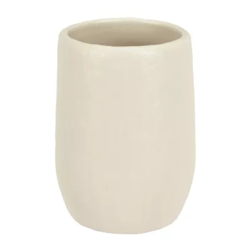 The Stockholm bathroom accessories keep your bathroom clean, organized, and coordinate effortlessly with any decor. Made of durable stoneware, the body has a natural texture, and the semi-glaze gives a light sheen. This collection consists of a lotion/soap dispenser, tray, tumbler, toothbrush holder, cotton jar, and soap dish all of which coordinate perfectly with the queen street bedding and home decor styles. These accessories are available in black, mocha, and cream color options and are easy to wipe clean for long lasting everyday use.