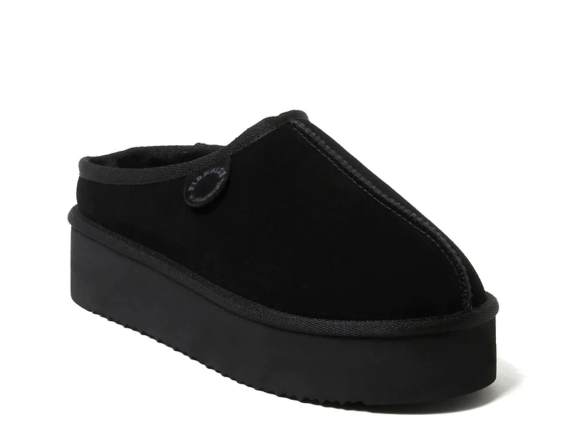 Elevate your cozy look with the Queenstown slipper from Fireside by Dearfoams. This platform pair sports a durable sole for indoor and outdoor wear, and a genuine suede design and cushy memory foam footbed that all combine for a well-rounded fit.