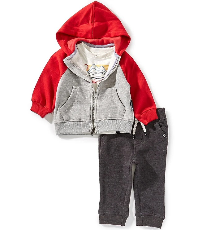 Quiksilver Baby Boys Long Sleeve Color Block Hooded Jacket, Coordinating Jogger Pants & Short Sleeve Logo/Graphic Jersey T-Shirt