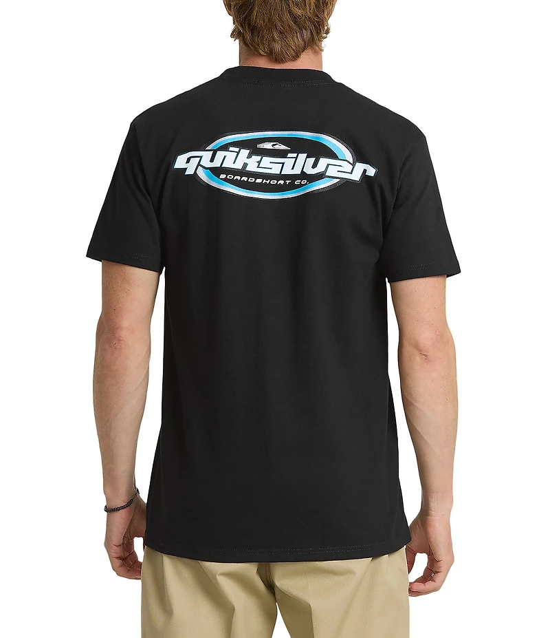 From Quiksilver, this t-shirt features: Crew neckline Short sleeves Logo graphic on the front and back Pullover construction Cotton Machine wash/tumble dry Imported.