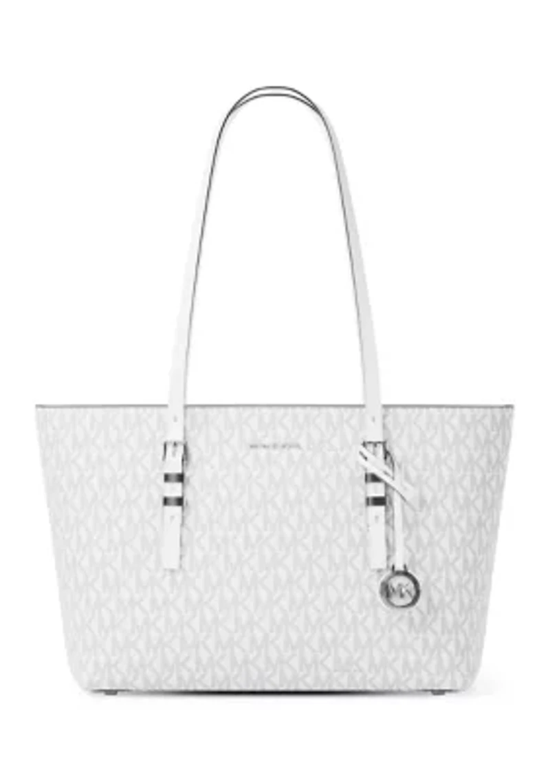 This designer tote bag is crafted from durable polyester material, ensuring longevity and easy maintenance. Measuring 4 inches in width, 9 inches in height, and 15 inches in depth, it offers ample space for your daily essentials. The bag features a spacious main compartment with a secure back zip pocket and two convenient front slip pockets, keeping your belongings organized and easily accessible. Its adjustable shoulder strap provides comfortable carrying options, making it a versatile companion for various occasions. Shoulder strap with 10.75" drop Interior: 1 back zip pocket, 2 front slip pockets Imported Product Specifications 4" W x 9" H x 15" D Material & Care Polyester Wipe clean
