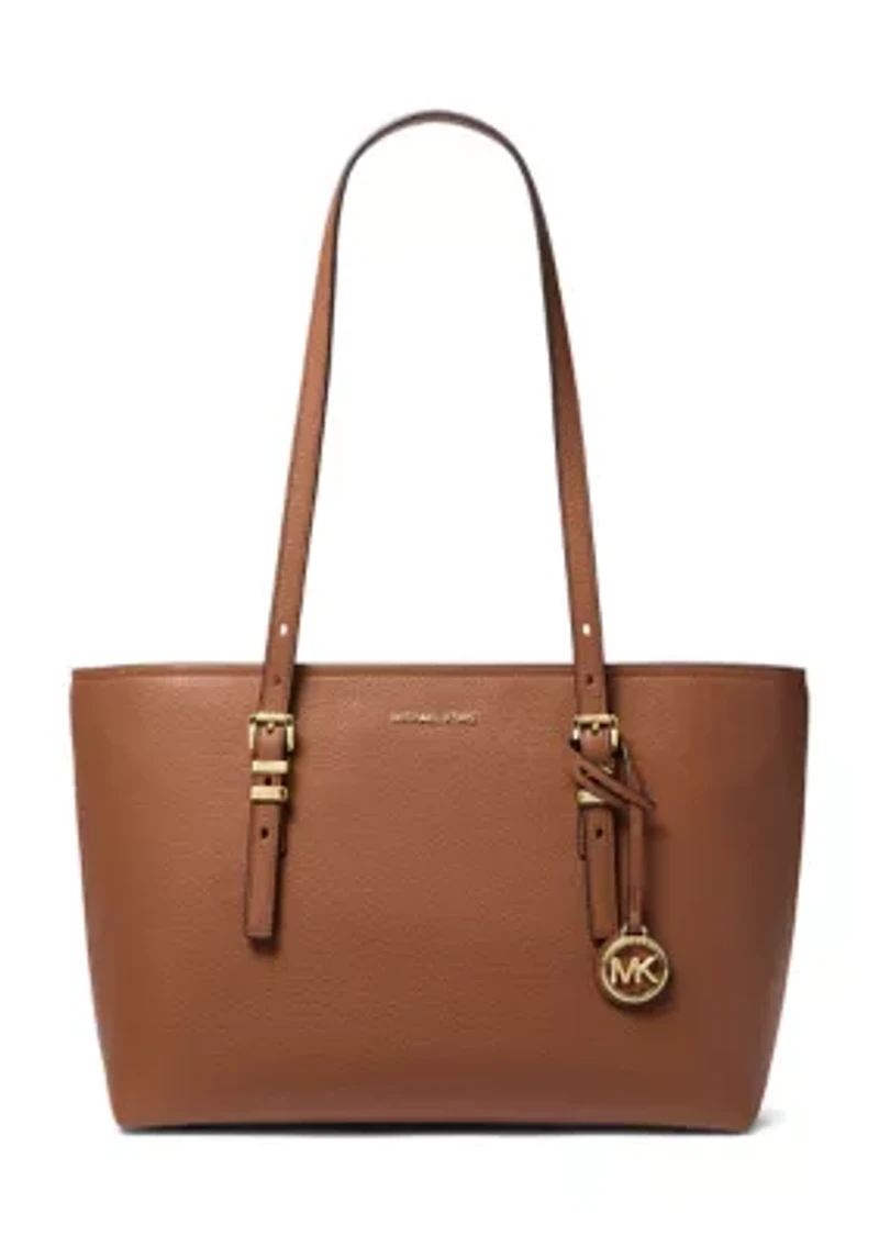 This elegant MICHAEL Michael Kors tote seamlessly blends style and functionality. Experience the luxury of genuine leather and appreciate the thoughtful design, featuring convenient interior pockets to keep your essentials organized. The comfortable shoulder strap allows for effortless carrying throughout your day. 10.75" shoulder strap Interior: back zip pocket, 2 front slip pockets Imported Product Specifications 4" W x 9" H x 15" D Material & Care Leather Wipe clean