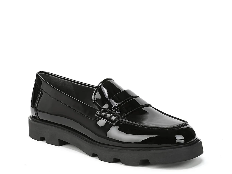 Exude a chic style with the Franco Sarto Quinnley loafer. Designed with a lug sole for comfort and edge, this loafer features synthetic upper with a polished finish and colorblock design for a distinguished appeal, while a classic penny slot strap nods to timeless style.