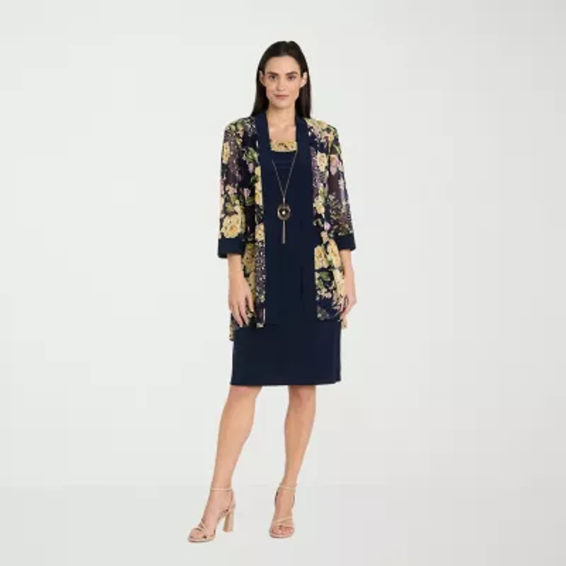 R & M Richards Womens Floral Jacket Dress With Removable Necklace