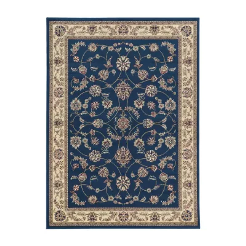 This timeless floral scroll design is a transitional pattern filled with large floral motifs to suit any space. The dominant black base is bordered by an intricate floral border to complete this transitional design machine made in Italy. Made of heat-set polypropylene, this rug provides a soft, non-shedding, durable, and easy to clean accent to the decor in your entryway, hallway, bedroom, playroom, dining room, or living room. A wide array of sizes and shapes, including rectangles, rounds, and runners, allows this machine made rug collection to fit in any space comfortably.