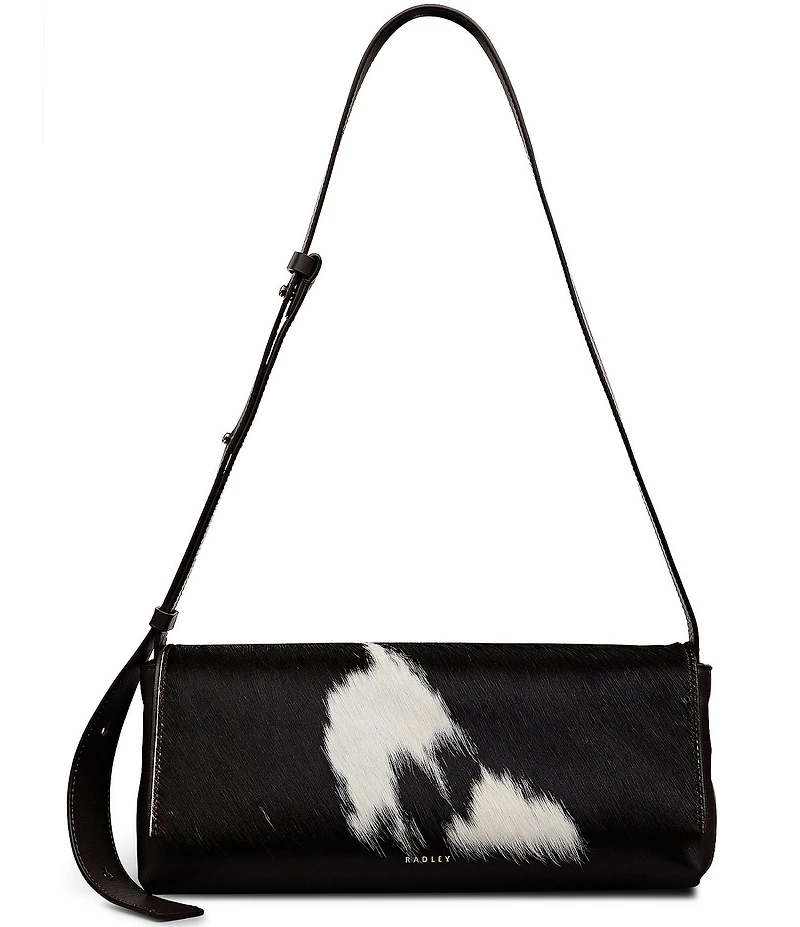 From Radley London, the Annabel Shoulder Bag features: Extended in both length and style, The Annabel shoulder bag is a lesson in leathercraft. This edition is made with sumptuous smooth leather and the contrast of genuine cowhide. Extend the strap or remove it to transform this elongated silhouette into an oversized clutch. Why we love it As its a natural material, no two cuts of cowhide leather are identical. This means there will be slight variations in the patterning, giving each bag its own unique look and characteristics. Smooth leather Cowhide leather flap and back Adjustable, detachable wide leather strap Triangular gusset shape Rolled edge flap with leather-covered magnetic fastenings Radley canvas lining Hanging interior slip pocket Heritage mark Slip back pocket Logo detail Comes with a dust bag Approx. 10'' adjustable shoulder strap drop Approx. 20'' adjustable crossbody strap drop Approx. 4'' L x 11.2'' W x 5.6'' H Imported.