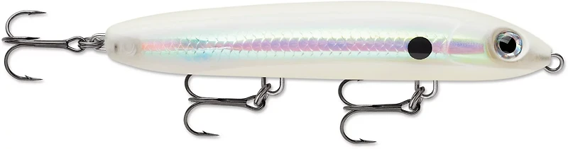 Don't go home empty-handed on your next fishing trip by using the Rapala Skitter V Series 5-1/4 in Topwater Bait. This hard bait is constructed with a realistic translucent body and 3-D holographic eyes to help draw the attention of trout/redfish. The V-hull design and tail-weighted balance allow the bait to cut quick at the snap of the rod, finishing off with a soft, long glide. 1 ounce. 5-1/4 inches.