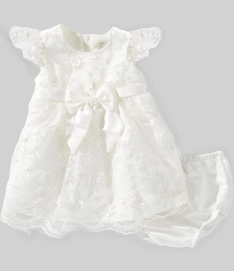 Rare Editions Baby Girls Flutter Sleeve Floral Lace Ribbon Bow Trim Fit-And-Flare Dress