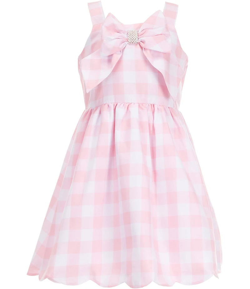 Rare Editions Big Girls Sleeveless Gingham-Printed Bow Accent with Pearls Fit-And-Flare Scallop Hem Dress in Chattanooga, TN