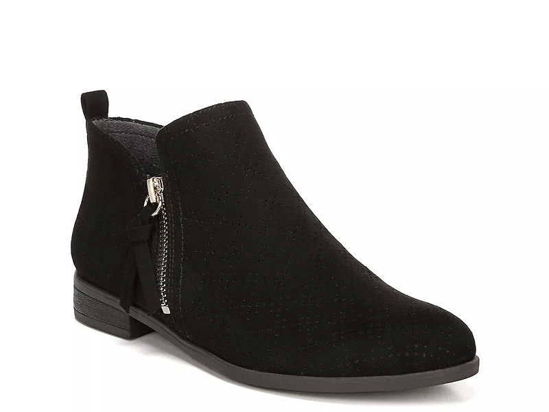The Rate bootie by Dr. Scholl's is a blend of trend-right fashion and marvelous comfort. Highlighted with all-over perforations on the faux suede upper, this bootie boasts of convenient outside zip closure and flexible inside elastic gore.