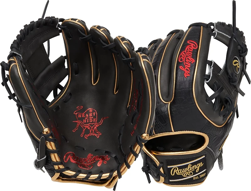 The Rawlings 11.5 in Heart of the Hide Fielding Baseball Glove features little to no break-in required for a game-ready feel, and the narrow fit design is ideal for smaller hands. Lowered finger stalls and an adjustable wrist opening help to create a customized fit. Constructed from Heart of the Hide steer leather, this glove features the game-day patterns of the top Rawlings Advisory Staff players.