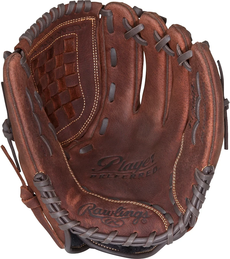 Crafted from buffalo leather, the Rawlings Player Preferred 12 in Infield/Pitcher's Glove is easy to break in. The inside features a soft Pro Micro lining and Zero Shock palm padding for comfort. You can use the hook-and-loop strap to adjust the fit as needed. Basket web.