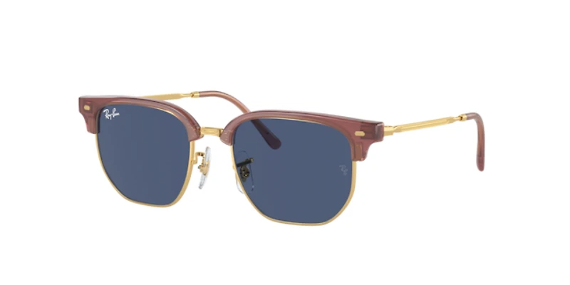 Ray-ban new clubmaster kids sunglasses are a quirky and stylish addition to any child's wardrobe. The irregular shape of the frame, paired with polished opal pink on gold finish, adds a playful touch to these glasses. The dark blue lenses further enhance the fun aesthetic while providing optimal protection for your little ones' eyes. These shades are not only fashionable but also practical. Available with prescription lenses.