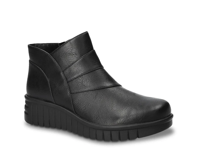 Step out in style and comfort with this Easy Street Rayleen wedge bootie. This ankle bootie features a sculpted layered overlay upper and an inside zipper for easy access. Beneath it all, the Comfort Wave platform ensures lightweight flexibility, while ultra-light Easy Motion insole cushions each step. A wedge heel gives you a just-right lift.