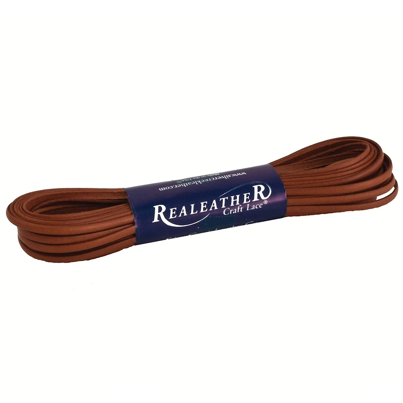 Cut from leathers that are tanned to our strict specifications, Realeather lace is strong, consistent, and flexible. Assemble fine tooled projects with this exceptional lace, which features a tight grain and smooth, glazed surface that has an attractive appearance and is pleasing to work with.Details:Available in multiple colors1/8" x 8yd.Precision cutFormed to maintain a slightly domed appearance, Easy to work withLeather
