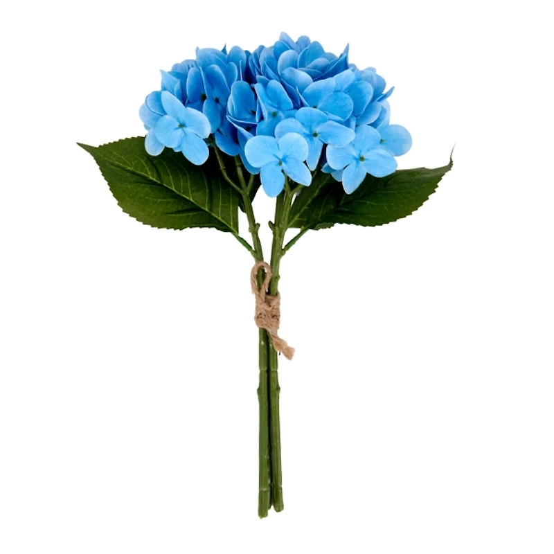 Awaken your home with lifelike treasures from a garden! Our Realistic Blue Hydrangea Bundle beautifully replicates the spring shrub with its vibrant color and delicate, flowering clusters. Bundle measures 14H x 10 in. in diameter Crafted of 80% plastic, 10% polyester, 5% rope, 5% steel Artificial hydrangea mix Leaf accents Includes three (3) stems Hues of blue and green Comes ready for display Care: Dust with a soft, dry cloth. Contact your local Kirkland's store for availability. Quantities and selection may vary by location. WARNING: Cancer and Reproductive Harm - For more information go to www.P65Warnings.ca.gov .
