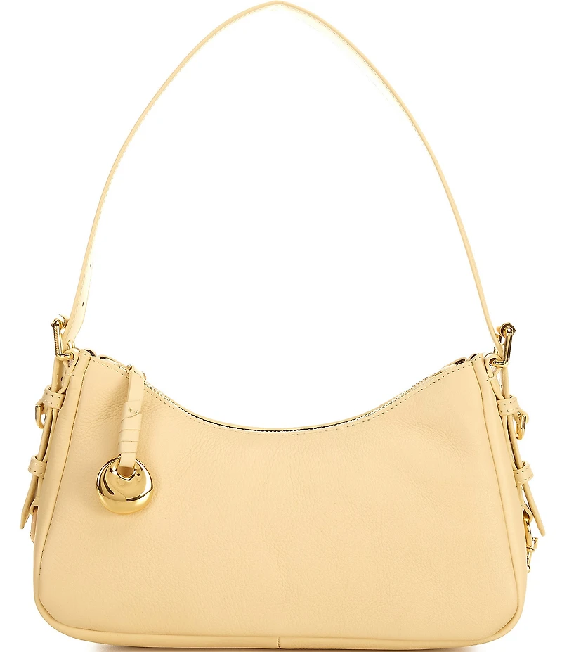 From REBECCA MINKOFF, the Mia Small Shoulder features: The Mia Small Shoulder Bag is a scaled-down take on the original, keeping the same understated shape with a lighter, more compact feel. Its softly curved silhouette is paired with a slim shoulder strap and a zipper closure that keeps essentials neatly in place. Finished with the signature charm detail, this smaller version adds a refined touch to everyday looks while staying easy and effortless to wear. Genuine leather Antique brass hardware Zip closure Strap length - 30.25" One handheld handle Handle drop: 10.25" Approx. 11.375" x 6.75" x 3.625" Imported.